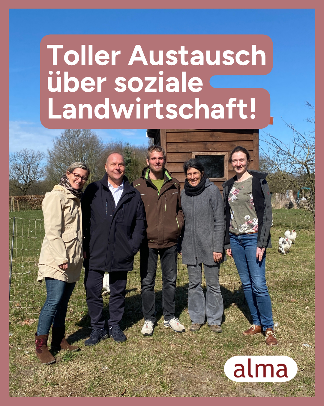 Zusammenkommen und Beratung wie sie Freude macht: Gestern kamen wir mit Axel und Britta von @leidenschaftfuerlandwirtschaft, Gerd und Petra vom BVN auf dem Hof in Holste zusammen. Zwischen Hühnern, Lämmern und Kaffe gab es enen tollen Austausch über Ideen zu sozialer Landwirtschaft, Möglichkeiten zum Netzwerken, Herausforderungen und Perspektiven. Wir freuen uns auf die nächsten gemeinsamen Schritte!