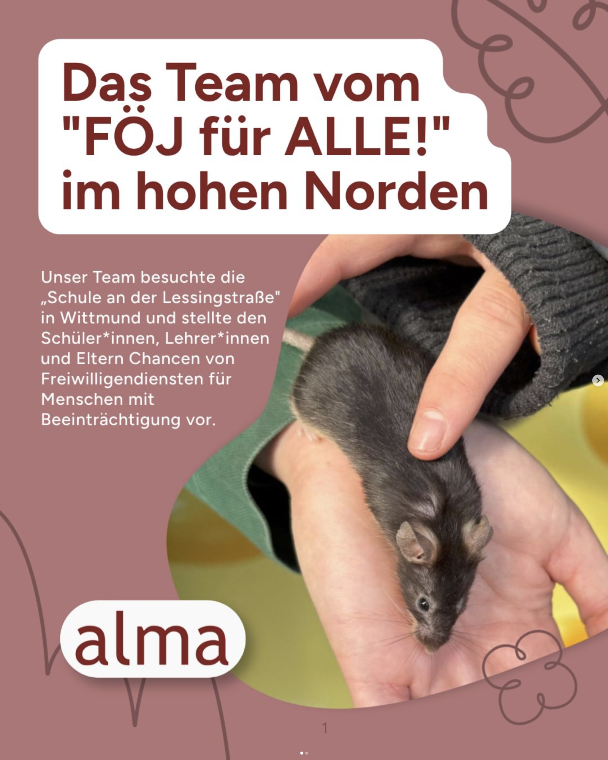 Das Team vom “FÖJ für ALLE!” hat einen Ausflug in den hohen Norden gemacht und die “Schule an der Lessingstraße” in Wittmund besucht. Den Schüler*innen der Abschlussstufe, ihren Lehrer*innen und interessierten Eltern wurden die “Chancen und Möglichkeiten von Freiwilligendiensten für Menschen mit Beeinträchtigung” vorgestellt. Highlight des Tages war die Exkursion in den Haustierpark Werdum, der FÖJ-Einsatzstelle ist. Eine der dort tätigen FÖJlerinnen hat die Gruppe durch den Park geführt und anschaulich von ihrer Tätigkeit berichtet. Wir danken der Schule an der Lessingstraße für die Einladung und dem Haustierpark Werdum für die tolle Führung!